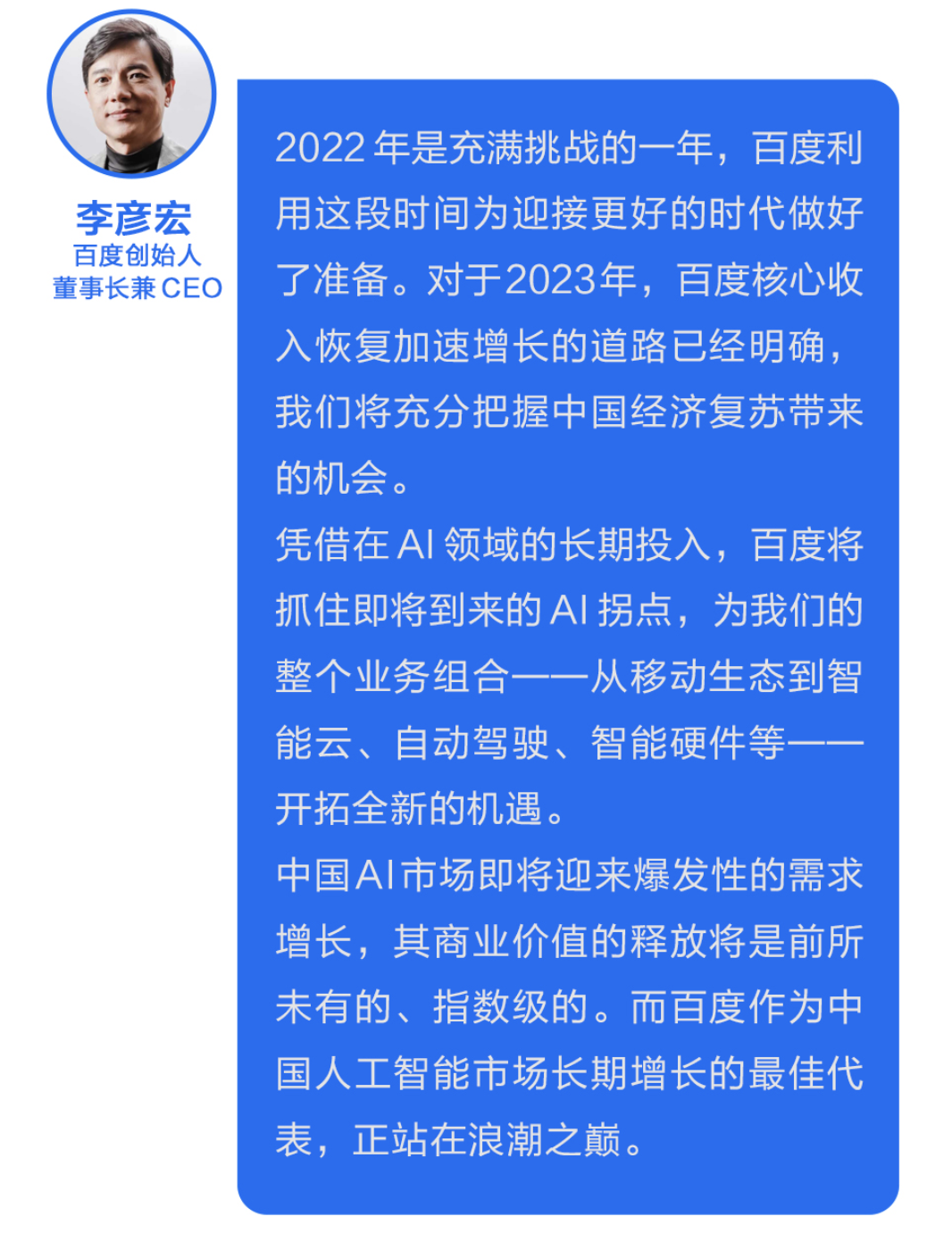 重磅官宣!"文心一言"要來(lái)了 0 1 百度在AI賽道上正在加速 2月22日,百度創(chuàng)始人、董事長(zhǎng)兼首席執(zhí)行官李彥宏在發(fā)給全員的財(cái)報(bào)信中透露,百度將在3月份推出生成式AI產(chǎn)品“文心一言”(ERNIE Bot),并計(jì)劃將搜索、智能云、Apollo自動(dòng)駕駛、小度智能設(shè)備等多項(xiàng)主流業(yè)務(wù)與之整合。 0 2 文心一言的想象空間 AI、搜索,都是百度的標(biāo)簽,百度也被大眾認(rèn)為是最容易做成中國(guó)版ChatGPT的公司。全力沖刺研發(fā)大語(yǔ)言模型、生成式AI產(chǎn)品文心一言的百度可謂背水一戰(zhàn)。 在人工智能四層架構(gòu)中,其中“文心一言”位于模型層。具體來(lái)看,深度學(xué)習(xí)框架層面,百度飛槳平臺(tái)在2022年底已凝聚535萬(wàn)開(kāi)發(fā)者,基于飛槳?jiǎng)?chuàng)建了67萬(wàn)個(gè)模型,服務(wù)20萬(wàn)家企事業(yè)單位,構(gòu)建起繁榮的AI技術(shù)生態(tài);文心在大模型層面已經(jīng)形成知識(shí)增強(qiáng)的ERNIE 3.0系列、跨模態(tài)系列等底座模型。這都為百度打造文心一言提供了堅(jiān)實(shí)的技術(shù)基礎(chǔ)。 過(guò)去幾年,百度持續(xù)使用人工智能技術(shù)改善搜索體驗(yàn)。自2019年3月以來(lái),百度文心大模型家族在改進(jìn)搜索結(jié)果方面發(fā)揮了重要作用,如優(yōu)化搜索排名、提升多模態(tài)搜索能力。 如果說(shuō)傳統(tǒng)搜索,人們需要滾動(dòng)鼠標(biāo)瀏覽頁(yè)面,消耗時(shí)間和腦力,在浩如煙海的鏈接中做出篩選。而全新的搜索頁(yè)面,你可以看到由AI直接整理好的結(jié)果列表的摘要。 按計(jì)劃,文心一言也將率先應(yīng)用于百度搜索,重塑信息的生成和呈現(xiàn)方式,創(chuàng)造下一代互聯(lián)網(wǎng)流量入口,這將進(jìn)一步作用于百度移動(dòng)生態(tài)用戶數(shù)與市場(chǎng)規(guī)模的增長(zhǎng)。 0 3 語(yǔ)音 文心一言的推出還將對(duì)于智能語(yǔ)音助手產(chǎn)生重要的影響。隨著智能語(yǔ)音助手的不斷普及,用戶對(duì)于語(yǔ)音交互的體驗(yàn)要求也越來(lái)越高。文心一言作為一款優(yōu)秀的生成式對(duì)話產(chǎn)品,能夠更好地模擬人類對(duì)話,提供更加自然、流暢的語(yǔ)音交互體驗(yàn)。 0 4 意義 文心一言的推出對(duì)于人工智能產(chǎn)業(yè)具有重要的意義。它不僅能夠推動(dòng)中國(guó)AI市場(chǎng)的快速發(fā)展,更能夠?yàn)槿藗儙?lái)更加便捷、高效、智能化的生活體驗(yàn)。相信在未來(lái),文心一言將成為人工智能領(lǐng)域的重要代表之一,為行業(yè)的不斷創(chuàng)新和進(jìn)步做出更大的貢獻(xiàn)。 文心一言的推出不僅對(duì)于中國(guó)AI市場(chǎng)的發(fā)展有著重要的意義,對(duì)于全球人工智能產(chǎn)業(yè)的進(jìn)步也起到了積極的推動(dòng)作用。作為一款能夠更好地模擬人類對(duì)話的生成式對(duì)話產(chǎn)品,文心一言的推出將為人工智能領(lǐng)域的發(fā)展帶來(lái)更多的可能性。 除了智能客服行業(yè)和智能語(yǔ)音助手產(chǎn)業(yè),文心一言的推出還將對(duì)于其他領(lǐng)域產(chǎn)生重要的影響。例如,在醫(yī)療健康領(lǐng)域,文心一言將有望幫助醫(yī)生更好地與患者溝通,提供更加個(gè)性化的診療服務(wù)。在金融領(lǐng)域,文心一言將有助于提升金融機(jī)構(gòu)的客戶服務(wù)質(zhì)量和效率。在教育領(lǐng)域,文心一言將有望為學(xué)生提供更加智能化、個(gè)性化的學(xué)習(xí)體驗(yàn)。這些都將為人們的生活帶來(lái)更多的便利和舒適。 文心一言的推出是人工智能領(lǐng)域的一次重要突破,體現(xiàn)了百度在人工智能領(lǐng)域的技術(shù)實(shí)力和創(chuàng)新能力。相信在未來(lái),文心一言將繼續(xù)發(fā)揮重要作用,為人工智能領(lǐng)域的發(fā)展帶來(lái)更多的新機(jī)遇和新挑戰(zhàn)。 0 5 影響 人工智能技術(shù)正在以驚人的速度發(fā)展,而ChatGPT則是其中最為先進(jìn)的一種應(yīng)用。ChatGPT不僅可以用于智能客服、語(yǔ)音助手、情感分析等領(lǐng)域,還可以用于醫(yī)療、教育、金融等多個(gè)領(lǐng)域。隨著中國(guó)版的ChatGPT的問(wèn)世,它將會(huì)在更多領(lǐng)域得到應(yīng)用,對(duì)于提高人們的生活質(zhì)量和工作效率,以及促進(jìn)AI技術(shù)的發(fā)展,都將起到積極的作用。 例如,在醫(yī)療領(lǐng)域中,ChatGPT可以用于智能診斷,為醫(yī)生提供更好的醫(yī)療輔助,幫助醫(yī)生更好地診斷和治療疾病。在教育領(lǐng)域中,ChatGPT可以用于智能輔導(dǎo),為學(xué)生提供更好的學(xué)習(xí)輔助,幫助學(xué)生更好地掌握知識(shí)。在金融領(lǐng)域中,ChatGPT可以用于智能客服,為用戶提供更好的服務(wù)體驗(yàn),幫助用戶更好地理解和使用金融產(chǎn)品。 中國(guó)版的ChatGPT的問(wèn)世,將會(huì)在中國(guó)的AI技術(shù)發(fā)展中發(fā)揮重要的作用。它的優(yōu)勢(shì)不僅在于語(yǔ)言和文化的適配,還在于對(duì)中國(guó)本土服務(wù)和場(chǎng)景的支持。同時(shí),它也將會(huì)對(duì)于提升人們的生活質(zhì)量和工作效率,以及推動(dòng)AI技術(shù)的發(fā)展,都起到積極的作用。讓我們期待明天更好,期待中國(guó)版的ChatGPT的到來(lái)。 End
